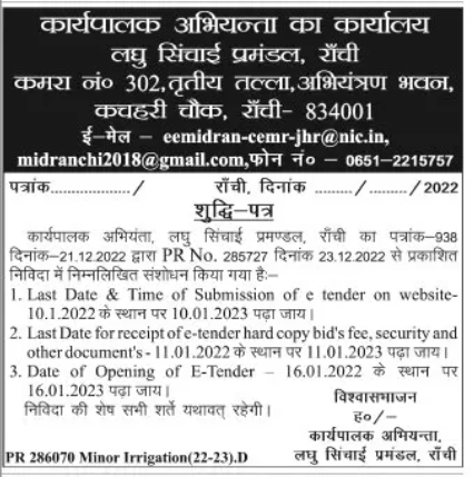 Minor Irrigation Division, Ranchi