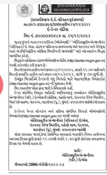 TENDER FOR ) “Executive Engineer (Transportation) E.S. invites online bids for “Maintenance of Administrative Office Buildings at Pantnagar and Gere” for a period of 6 months.