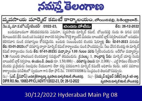 Tender for experience in managing canteen and toilet block for a period of one year from the date of allotment to the following work at Agriculture Market Committee, Boinapally