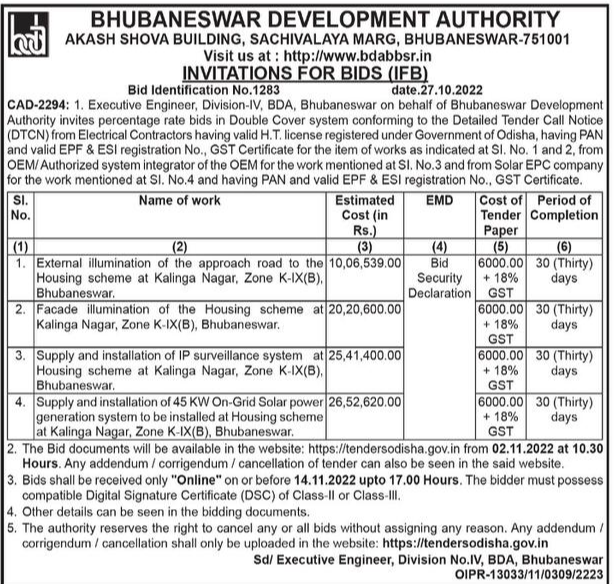 External illumination of the approach road to the Housing scheme at Kalinga Nagar, Zone K-IX(B). Bhubaneswar.