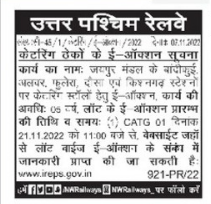 Tender for Ferring Stalls at Bandikui Alwar, Phulera, Dausa and Kishangarh stations of Jaipur.