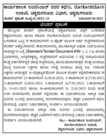 19 works under Chikkamagaluru and Kadur Public Works Department