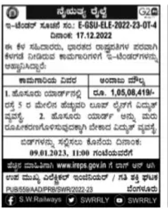 Tender for for additional loop line on road 5, 2 Electrification for redevelopment of Hosur Yard