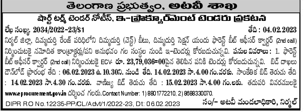 Tender for For construction of Forest Beat Officer Quarter (2nd cal)