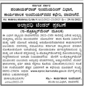 Tender for for construction of school room and other works approved under Special Development and State Sector Advanced Projects in 24122-23 of Davanagere under this division.