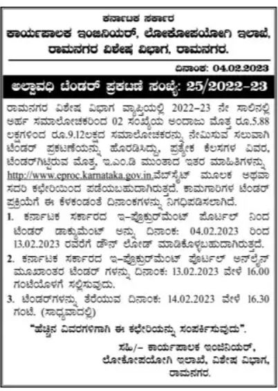 mercial Short Term e-Tender through e-procurement portal (https://www.eproc.kamataka.gov.