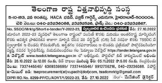 Tender for for inter-state marketing of freshly threshed certified rice (C/S) on as-needed basis.
