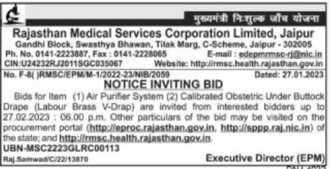 Tender for for Item (1) Air Purifier System (2) Calibrated Obstetric Under Buttock Drape (Labour Brass V-Drap)