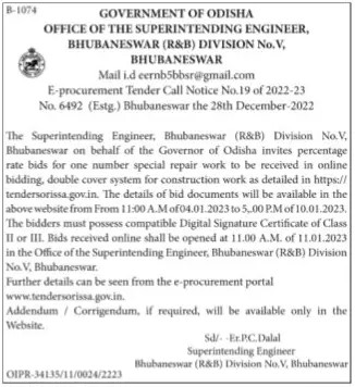 Tender for for one number special repair work