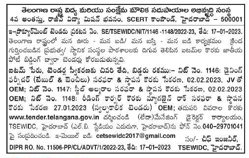 Tender for for Supply & Installation of Dining Furniture (Table & Benches), 02.02.2023, OEM with JV; nit no. 1147: Procurement for Supply & Installation of Steel Shelves, 02.02.2023 | OEM; nit no. 1148: Procurement for Supply & Installation of Magazine Rack for Reading Corner