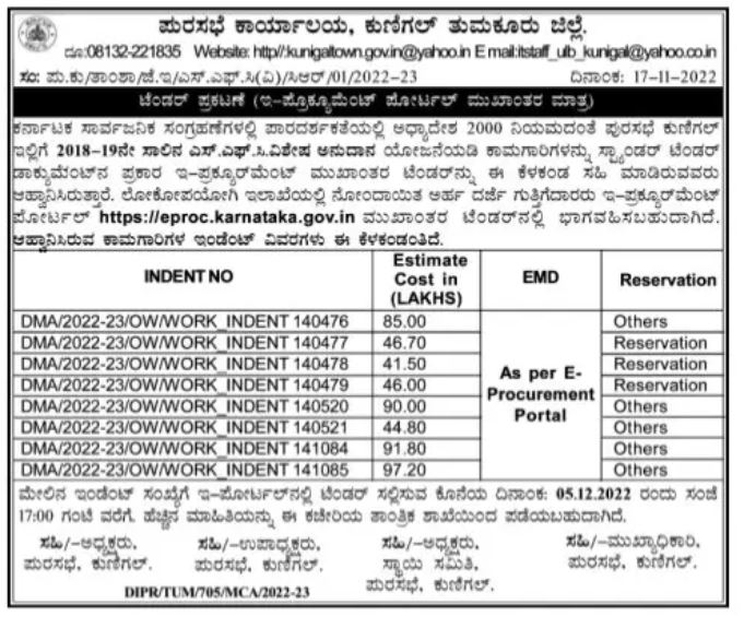 Municipality Kunigal as per Karnataka Public Procurement Ordinance 2000 on Transparency