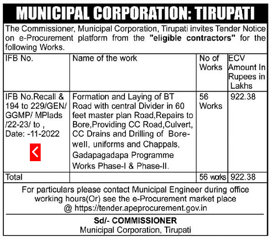 Formation and Laying of BT Road with central Divider in 60 feet master plan Road, Repairs to Bore, Providing CC Road, Culvert,