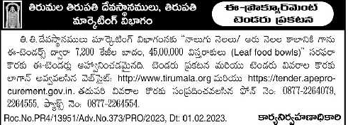 Tender for Fresh water supply tankers of 5000 L capacity (52 No.) for supply to various villages under Vijayawada Parliament.