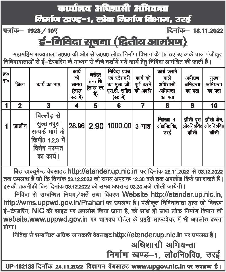 Tender for from Billaud Sultanpura link road in km 1,2,3 special repair work .