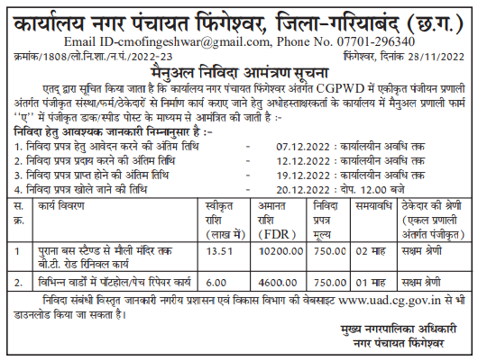 Tender for From Old Bus Stand to Mauli Mandir B. T. Road Renewal Work