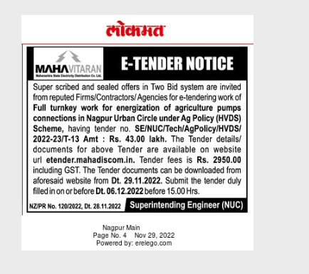 connections in Nagpur Urban Circle under Ag Policy (HVDS).