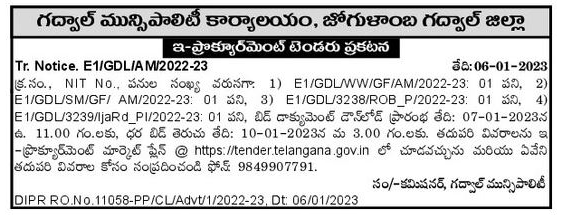 Tender for Gadwal Municipality Office, Jogulamba Gadwal District