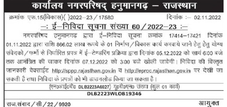 Tender for getting 01 construction/development work