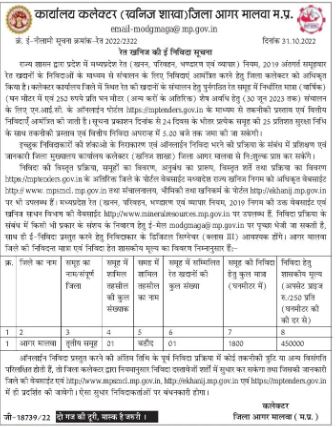 Tender for Government has authorized the District Collector to tender for operation of Ansar sand mines