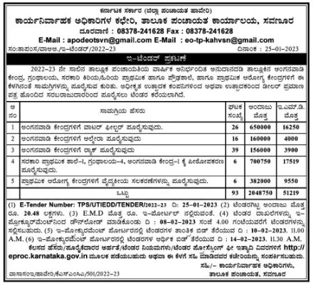 Tender for Government of Karnataka (Zilla Panchayat Haveri) Executive Officers Office, Taluka Panchayat Office, Savanur