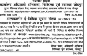 Tender for Government of Rajasthan Office of the Executive Engineer, Medical and Health Jodhpur On behalf of the Governor of Rajasthan, online tenders are invited in the prescribed form for 15 works