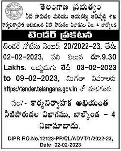 Tender for Government of Telangana Water Drainage and Ayakattu Development