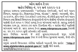 TENDER FOR GOVERNOR OF GUJARAT STATE “Executive Engineer, Roads and Buildings Department, Malpur Road, Vishramgriha Campus, Modasa”, District – Aravalli, Pin.