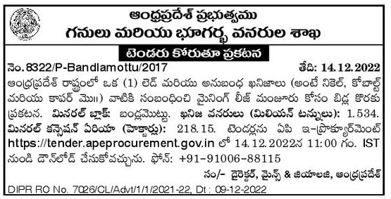 grant of mining lease in respect of one (1) lead and allied minerals (ie nickel, cobalt and copper etc.) in the State of Andhra Pradesh. Mineral Block: Bandlamottu. Mineral resources (million tonnes): 1.534. Mineral Concession Area (Hectars): 218.15.