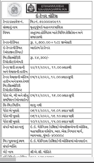 TENDER FOR Greater Mumbai Municipal Corporation Various fabrications at Kasturba Hospital.