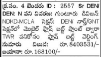 Tender for Guntur Division: Flash welding for TWR work by Mobile Flash Batti Plant at Section
