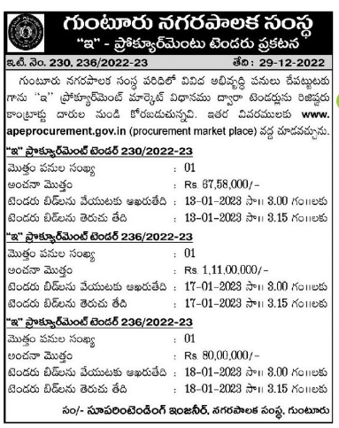 Tender for Guntur Municipal Corporation of 01 work