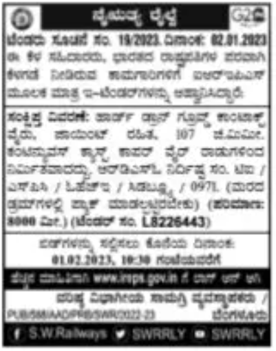 Tender for Hard Contact Continuity Cans Copper Wire, Made of Rods, ADSO Specification No. TI / STAA/LEE/ / 0971.