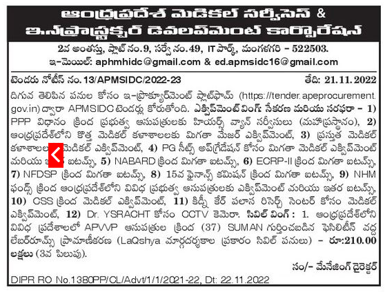 Hears Van Services to Government Hospitals under PPP Scheme (Mahaprasthanam), 2) Other Major Equipment for New Medical Colleges in Andhra Pradesh,