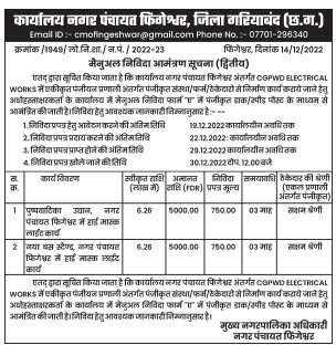 Tender for High mask light work in Pushpavatika Udyan Panchayat Fijeshwar Town