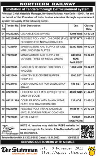 Tender for HIGH TENSILE CENTRE BUFFER COUPLER