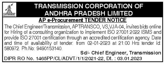 Tender for Hiring of a consulting organization to implement ISO 27001:2022 ISMS and provide ISO 27001 certification through an accredited certification agency.