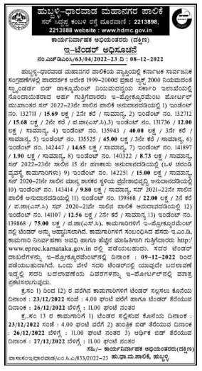 Tender for Hubli-Dharwad Municipal Corporation’s Works Karnataka