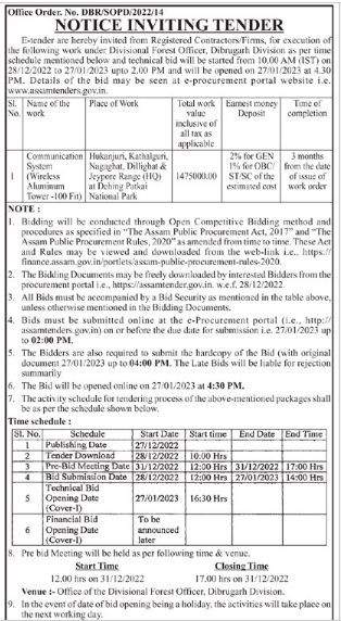 Tender for Hukanjuri, Kathalguri, Nagaghat, Dillighat & Jeypore Range (HQ) at Dching Patkai National Park