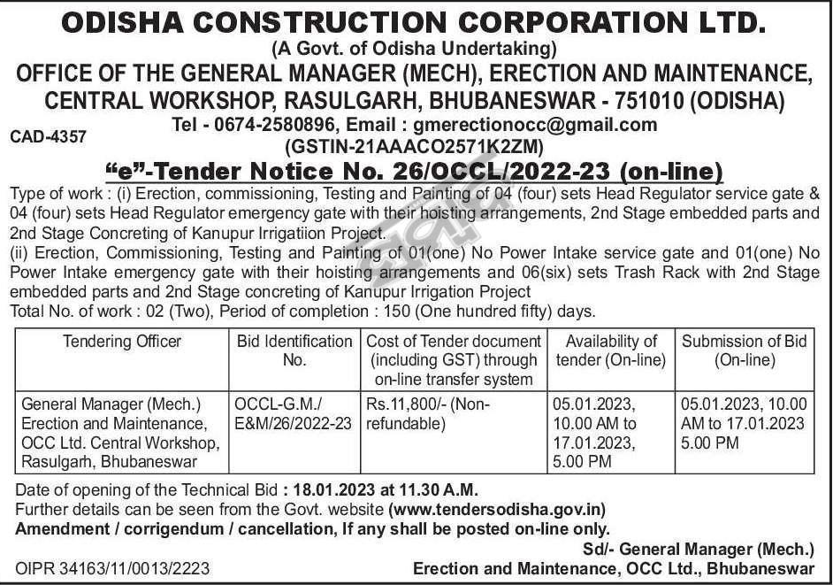(i) Erection, commissioning, Testing and Painting of 04 (four) sets Head Regulator service gate &