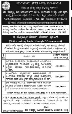 Tender for identification of contractors for repair of weighing machines at Anganwadi Centers in the area.