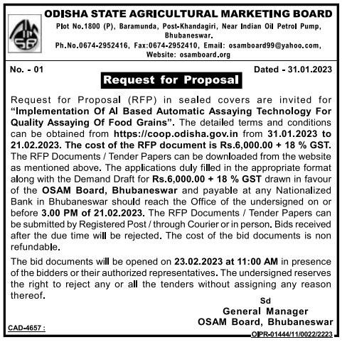 Tender for Implementation Of Al Based Automatic Assaying Technology For Quality Assaying Of Food Grains.