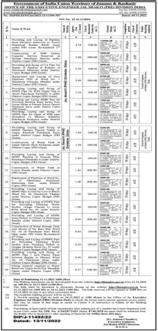 Tender for Improvement/Extension of distribution system and replacement of wornout / damaged pipes at Horse Wali Gali, Sham Karyana Store and Adjoining areas in Ward no.08. (JMC Capex) (8th Time)