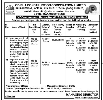 Tender for Improvement of Service Road with black topping Right Extension main Canal and off-taking branch canal, distributaries canal under RCD No-L Junagarh.