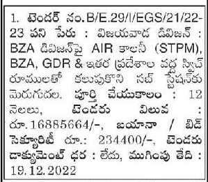 Tender for Improvement of Sub Station at AIR Colony (STPM), BZA, GDR & Other Places on BZA Division