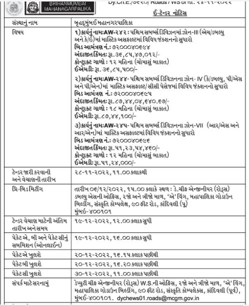 TENDER FOR Improvement of various junctions in Mastic Asphalt in Zone-II (H/W and KE) in Western Suburbs Division