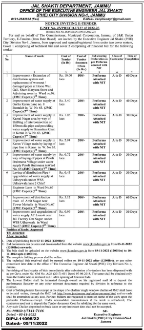 Tender for Improvement of water supply by way of laying of pipes at Patoli Brahmana Village under water supply Patoli Brahmana in Ward upgradation of water supply at Udheywala under WSS No. 65 (JMC Capex) (7th Time)
