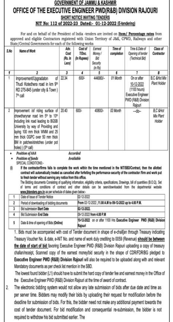 Tender for Improvement Upgradation Thudi Kotechera road in km 9 RD 275-845 (under city & Town) 7h call