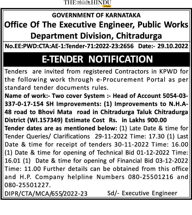 Head of Account 5054-03 337-0-17-154 SH Improvements: (1) Improvements to N.H.A 48 road to Bhovi Mata road in Chitradurga