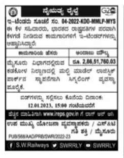 Tender for In Mysore Division Signaling system for establishment of Multi Modal Logistic Park at Kadakola Station.