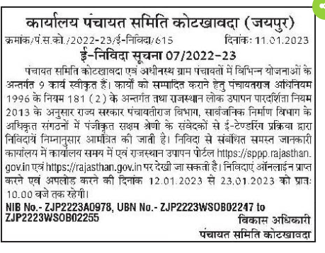 Tender for In Panchayat Samiti Kotkhavda and subordinate Gram Panchayats, 9 works are approved under various schemes.